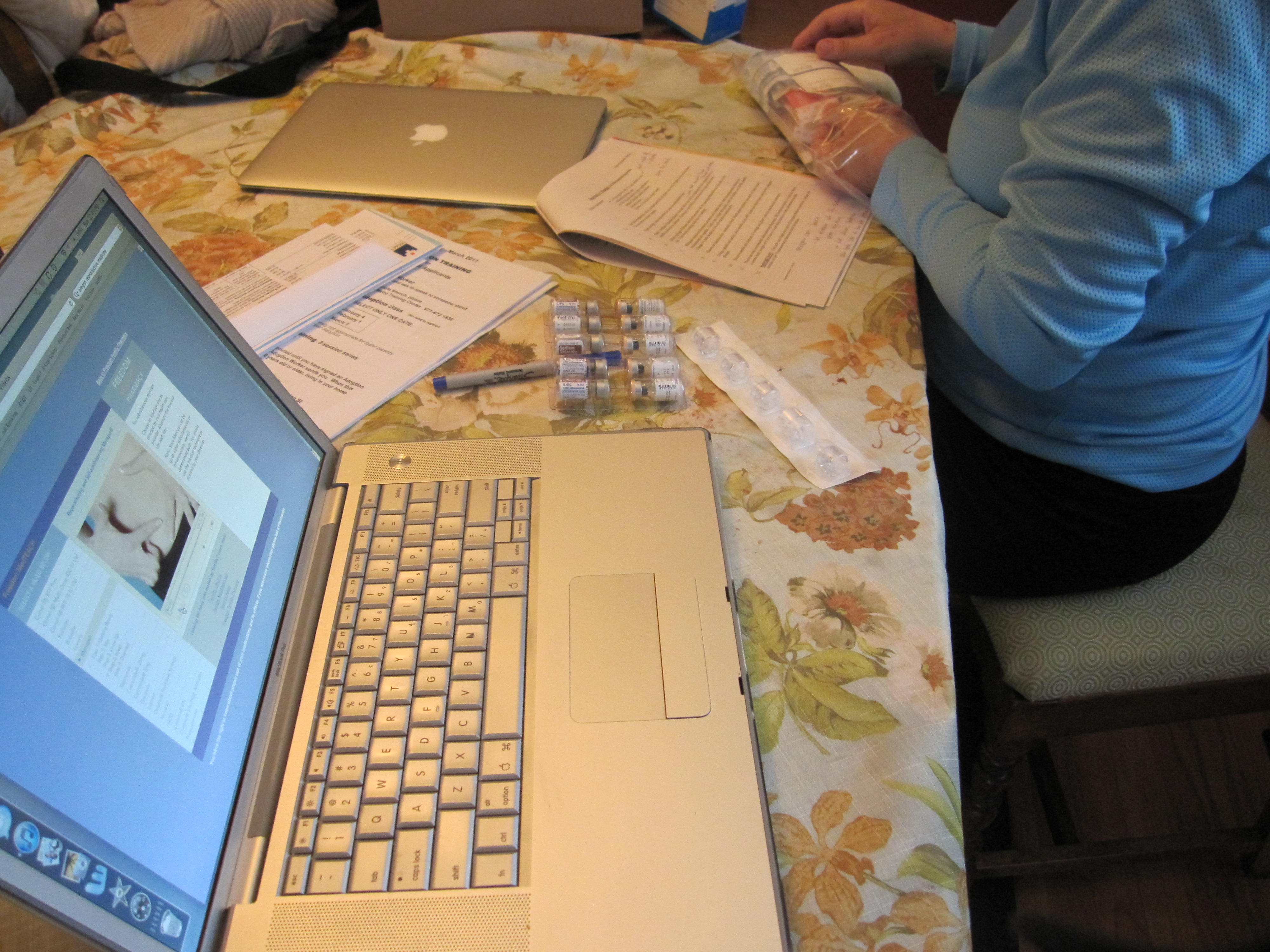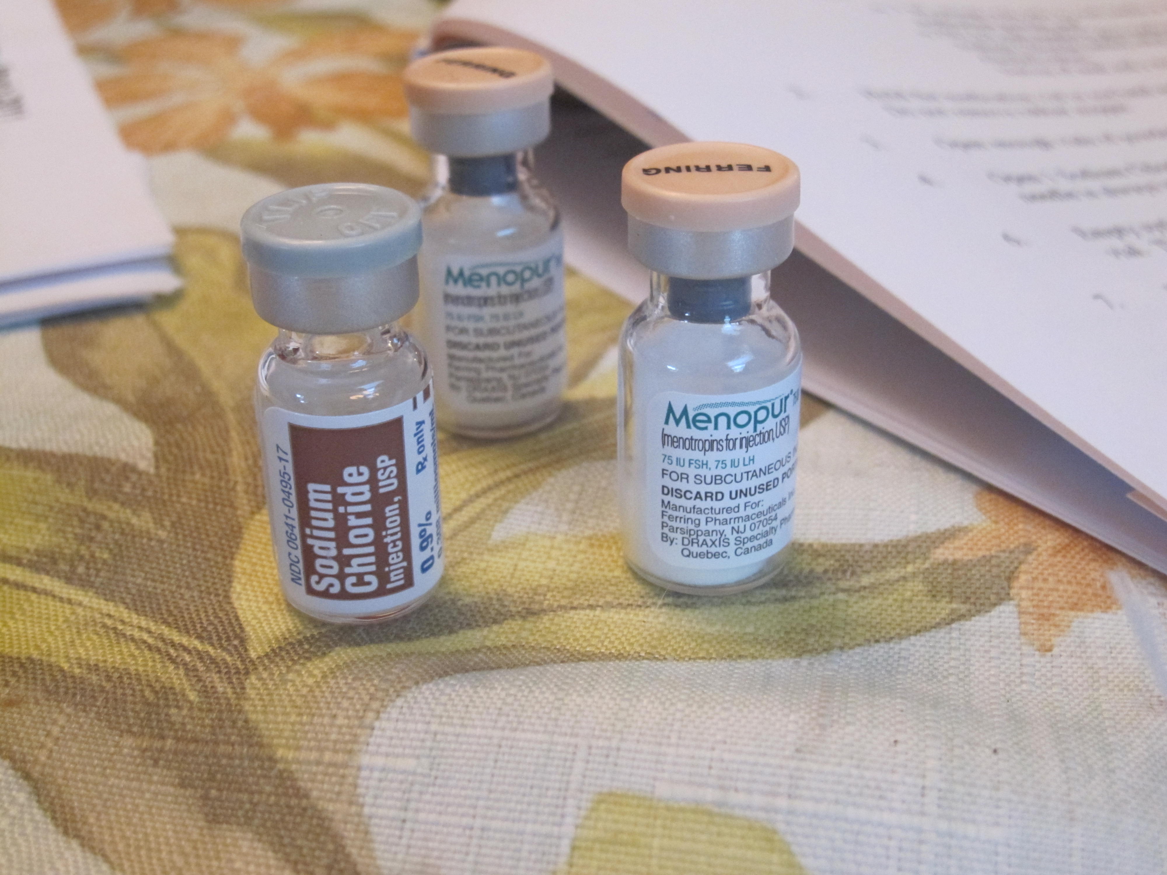 We came home from the brunch and got to putting together the first round of stimulants. The morning injection is called Menapur (the evening one is Follistim). The Menapur requires some mixing of 3 different vials. The first time we did it, it was a little tricky… we ended up having to page Dr. H on a Sunday and in the end Regina ended getting two shots instead of one. But, it was all good learning and soon it’ll be smooth and easy. For now, take a peek at the pictures and video below. You can see there are a few things to juggle and get right! Gina has been truly amazing.