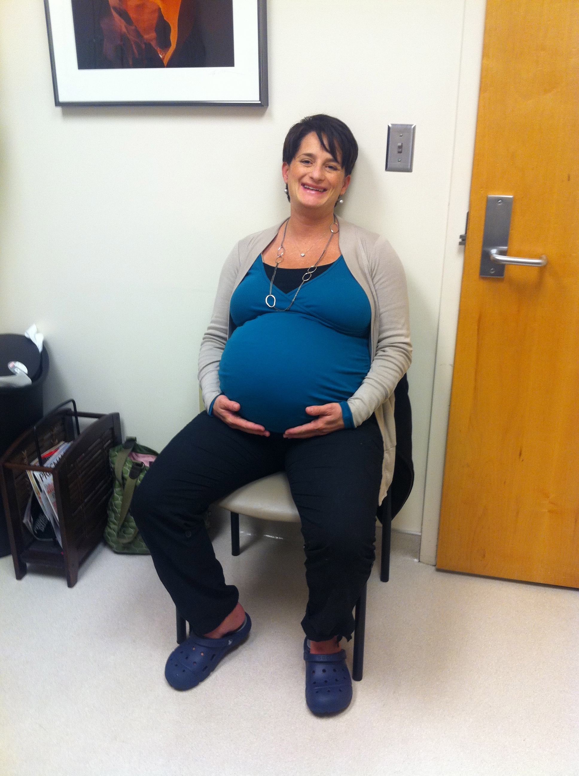 We saw our OB today for our weekly visit. Gina drove me there and when we got to the hospital, she (insisted she) put me in a wheelchair to get up to the fourth floor and down the long hall. I was totally mortified until I realized how FANTASTIC it was to not have to walk all that way. Relief.