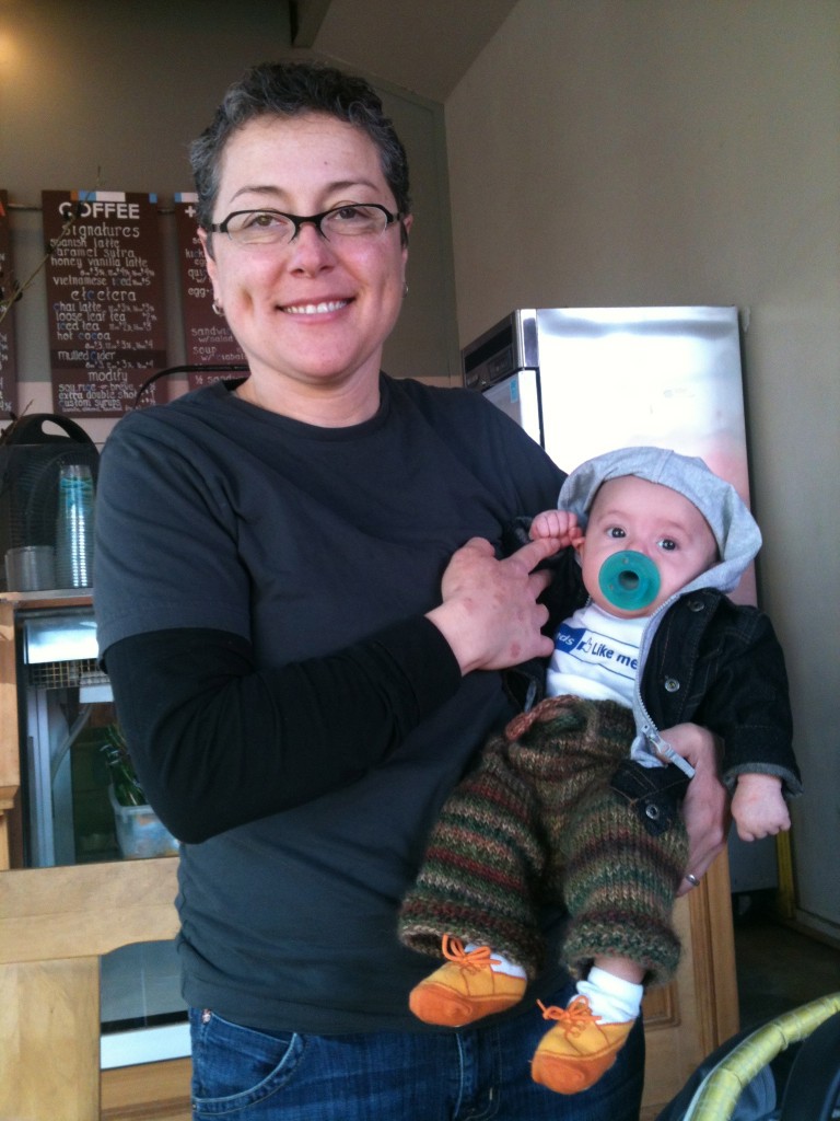 We still co-sleep, even though we will rearrange who sleeps where as the girls get bigger. Gina and I are now sleeping next to each other again. We spooned and cuddled for the first time since I was about 6 months preggers and too big to be that close. It felt so nice. We both exhaled deeply. Anyway, I love our big family bed. It’s so much fun and such a sweet time of bonding. On mornings that Gina doesn’t work we wake up and all cuddle, listen to music that we want to introduce them to, laugh, play, nurse and eventually go back down for our morning naps. I absolutely love this time for our family. It really is the heart of what I dreamed and wanted to badly for so many years. (Insert a sweet sigh here).