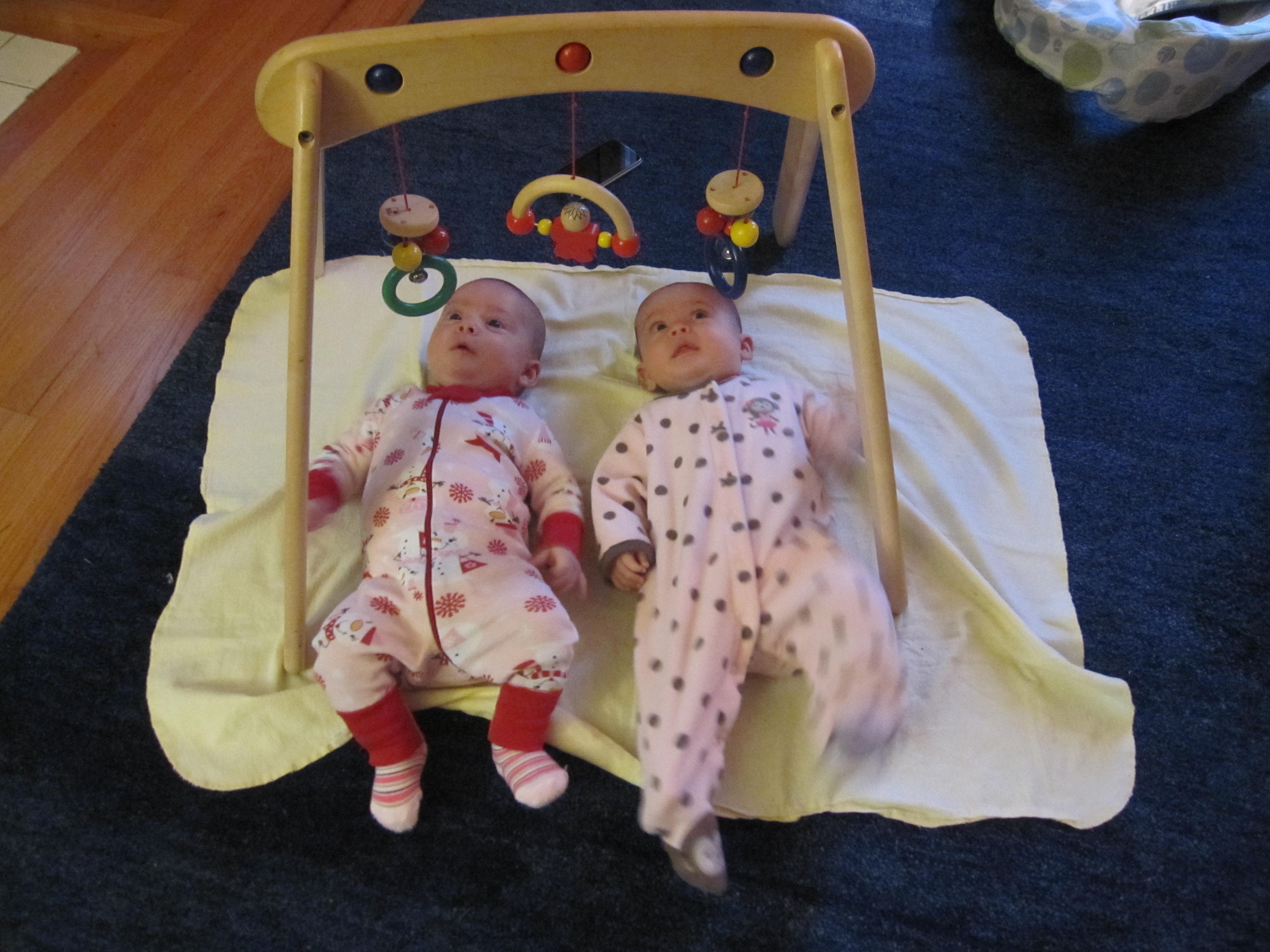 Month three was in some ways harder than any other in that the sleep deprivation (for us and them) was cumulative, the food support mostly petered out and I was mostly solo… along with increased demands from the girls. On the other hand, so much more rewarding in terms of the smiles, the changes in their development and our bonding as a family.