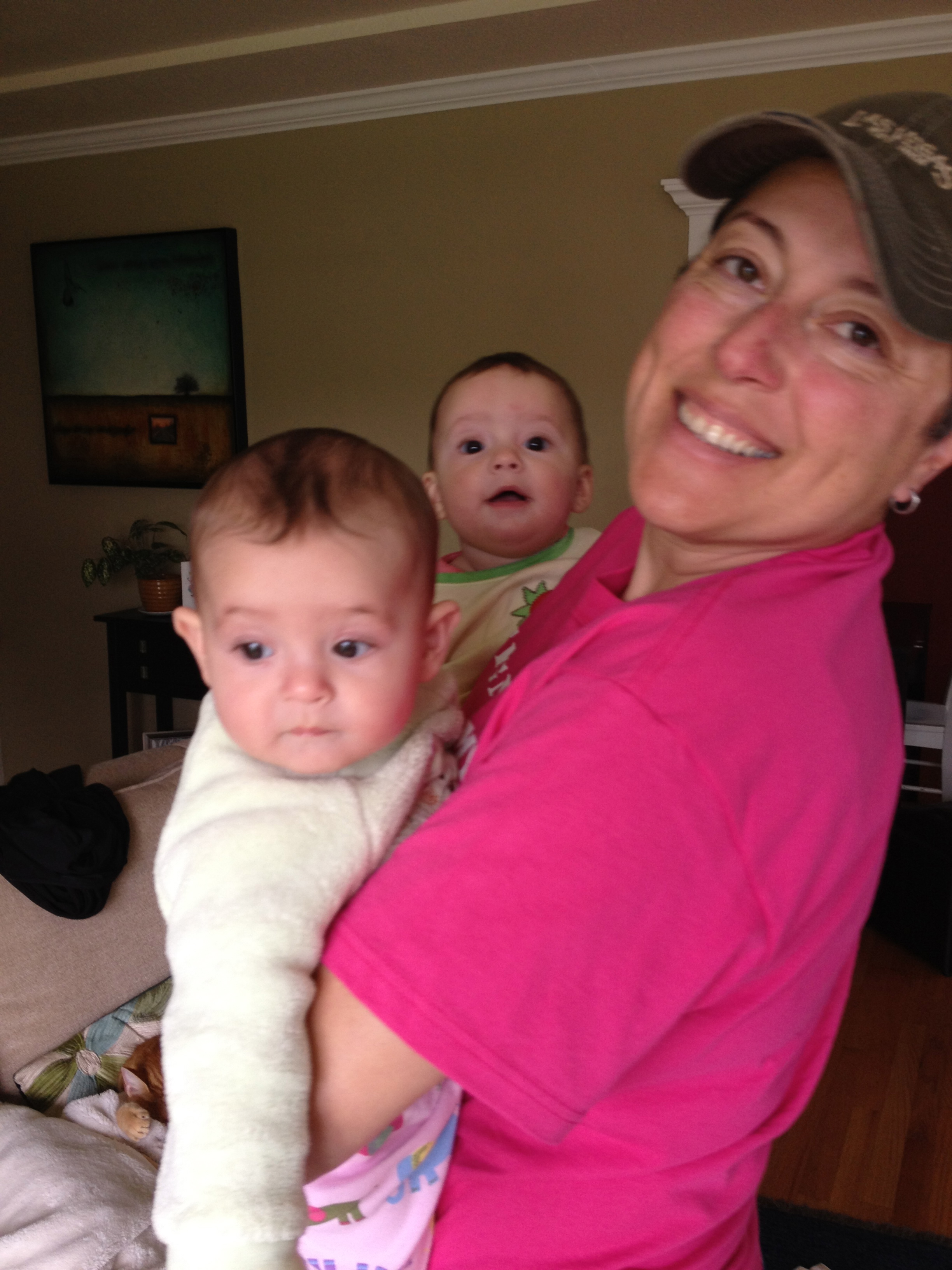 The next day we got up and did the same. Each day is still an experiment and doesn’t always go as planed (construction outside woke Callie early one day, Genevieve woke too late from a nap another day, Neko woke them both up yesterday) but each day that goes by I get better and timing their TWO (instead of three or four) naps and they get better at sleeping longer.