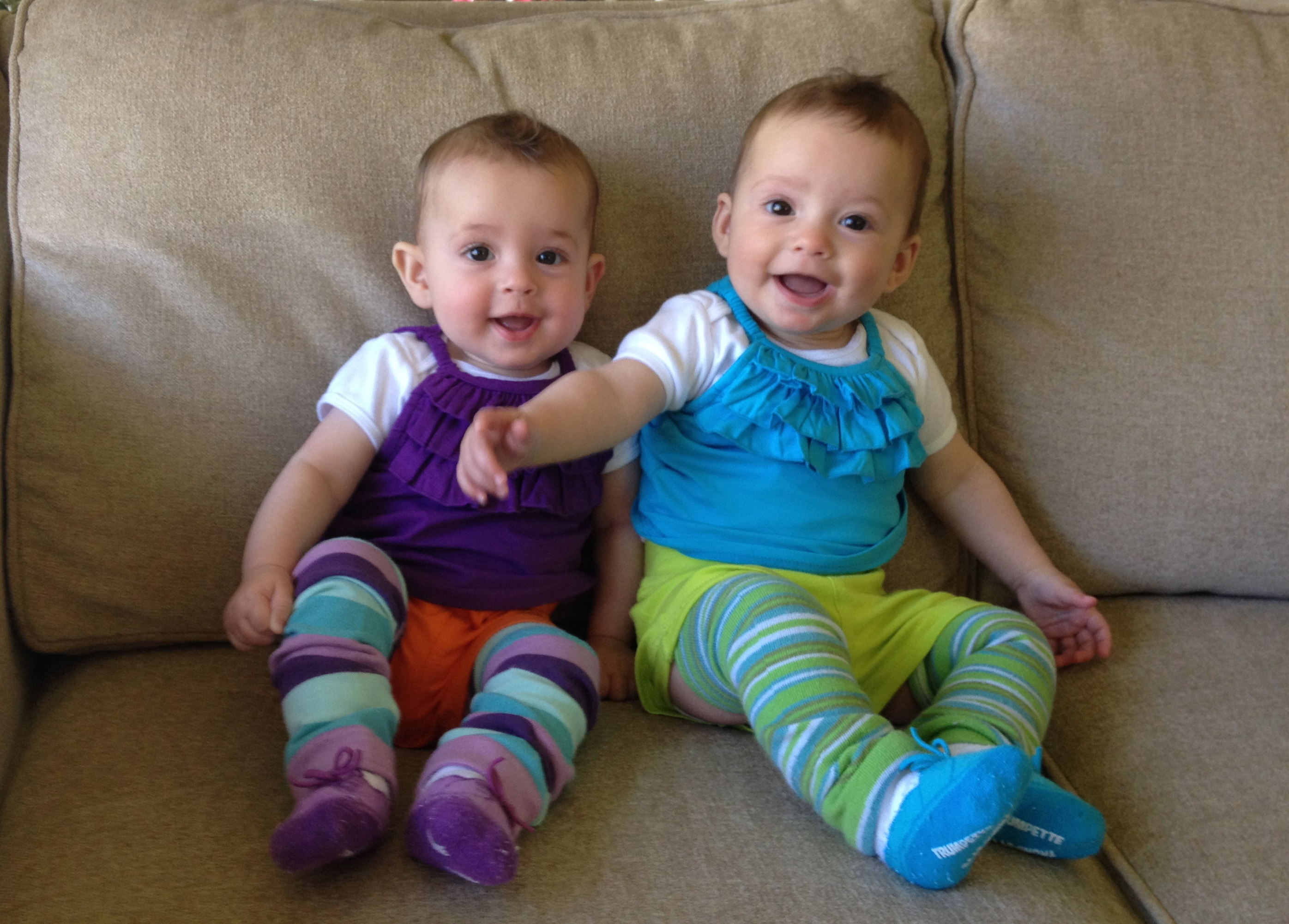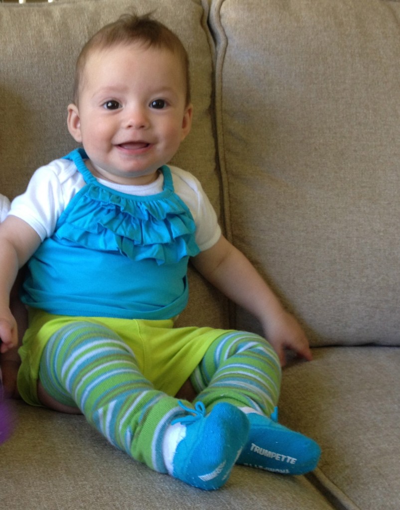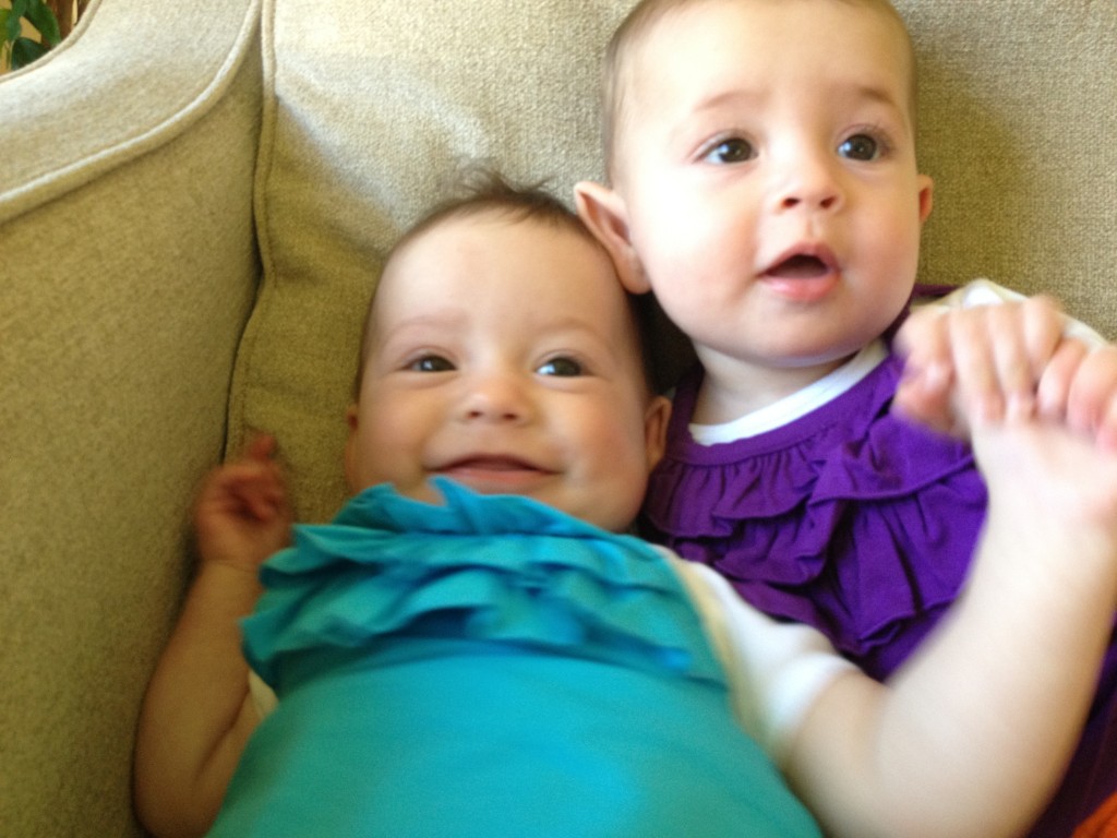 The girls are HUGE! We go in for our six month check up next week so we’ll get all their stats then, but my money says G is 16+ pounds and C a whopping 14. We’ll see!