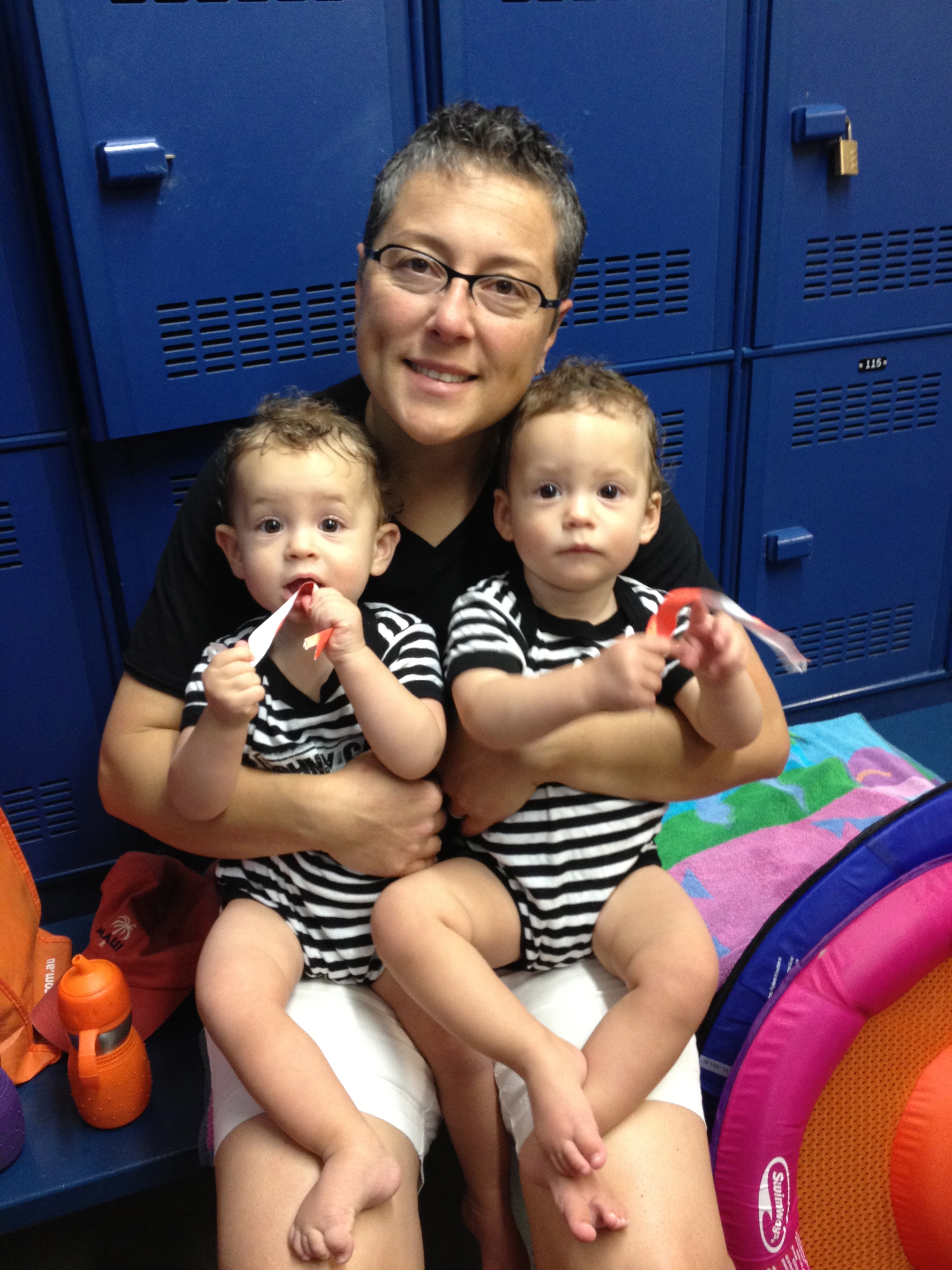 After swimming at community pool- in locker room.