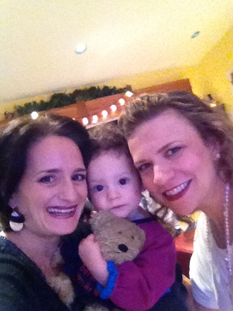 Mama, Genevieve (holding a stuffed animal she found at the party) and Auntie Amy.