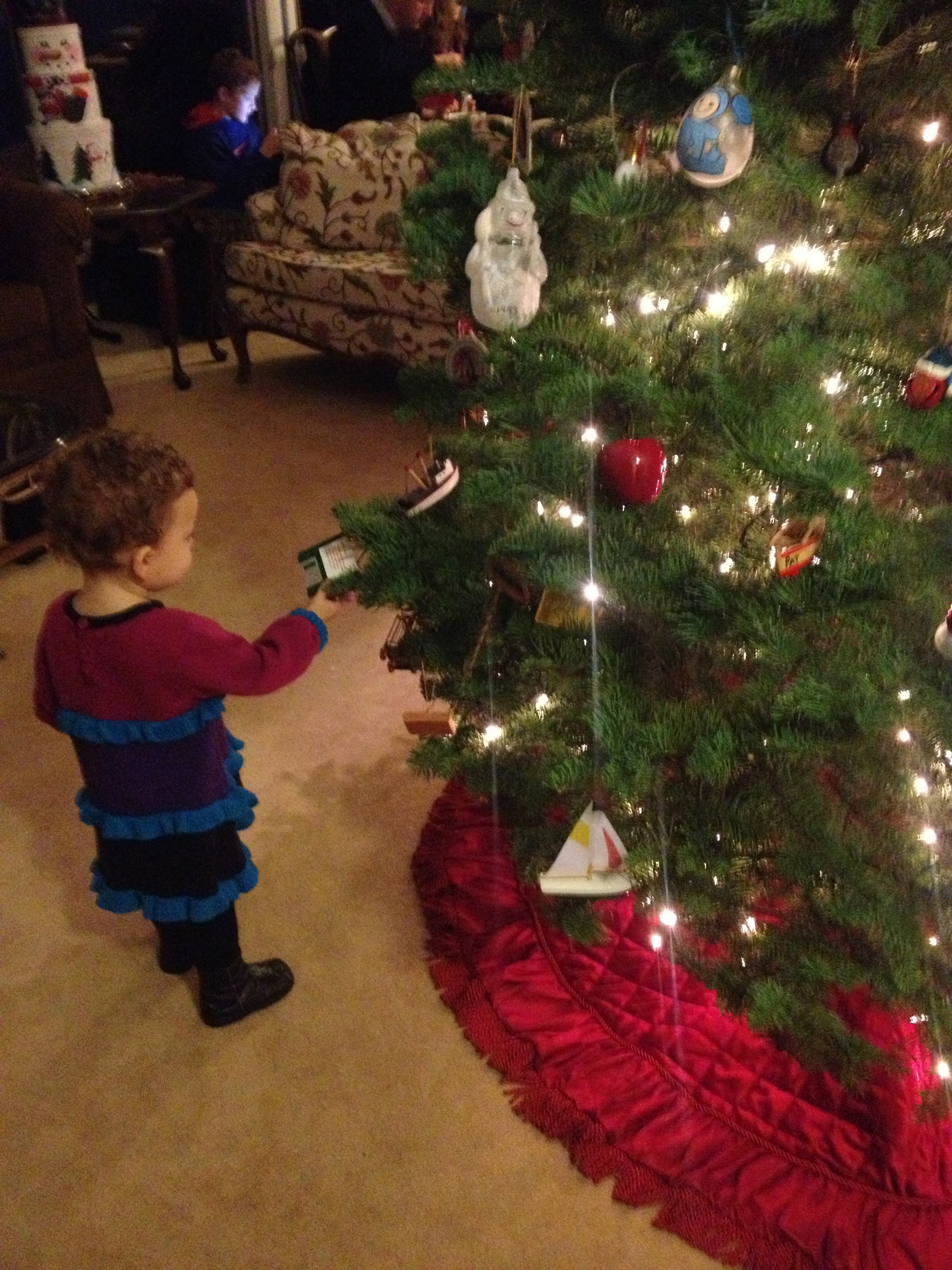 Calliope being inquisitive and gentle with her first up-close tree experience.