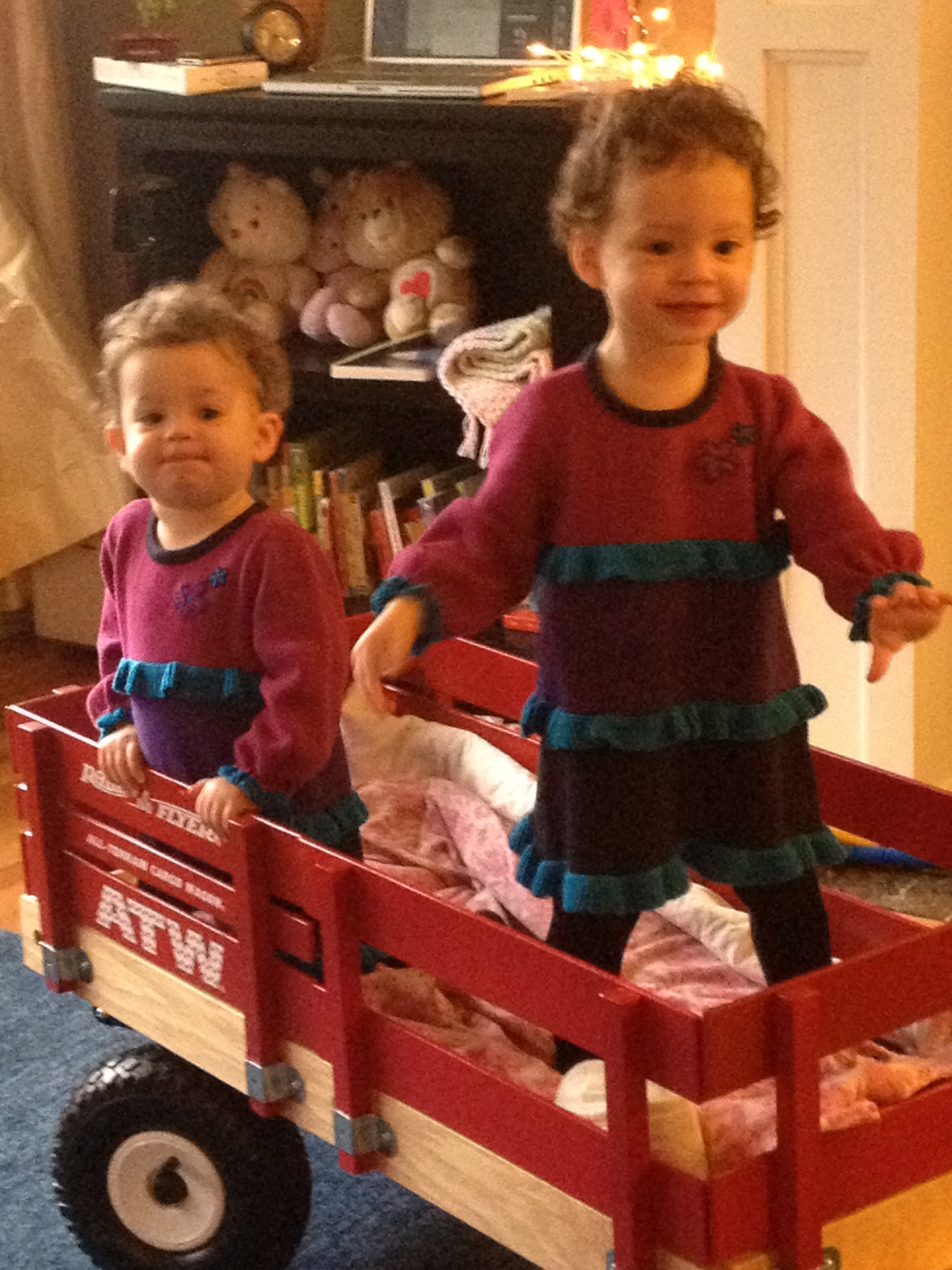 Riding in the Radio Flyer (ready to go out for Christmas)