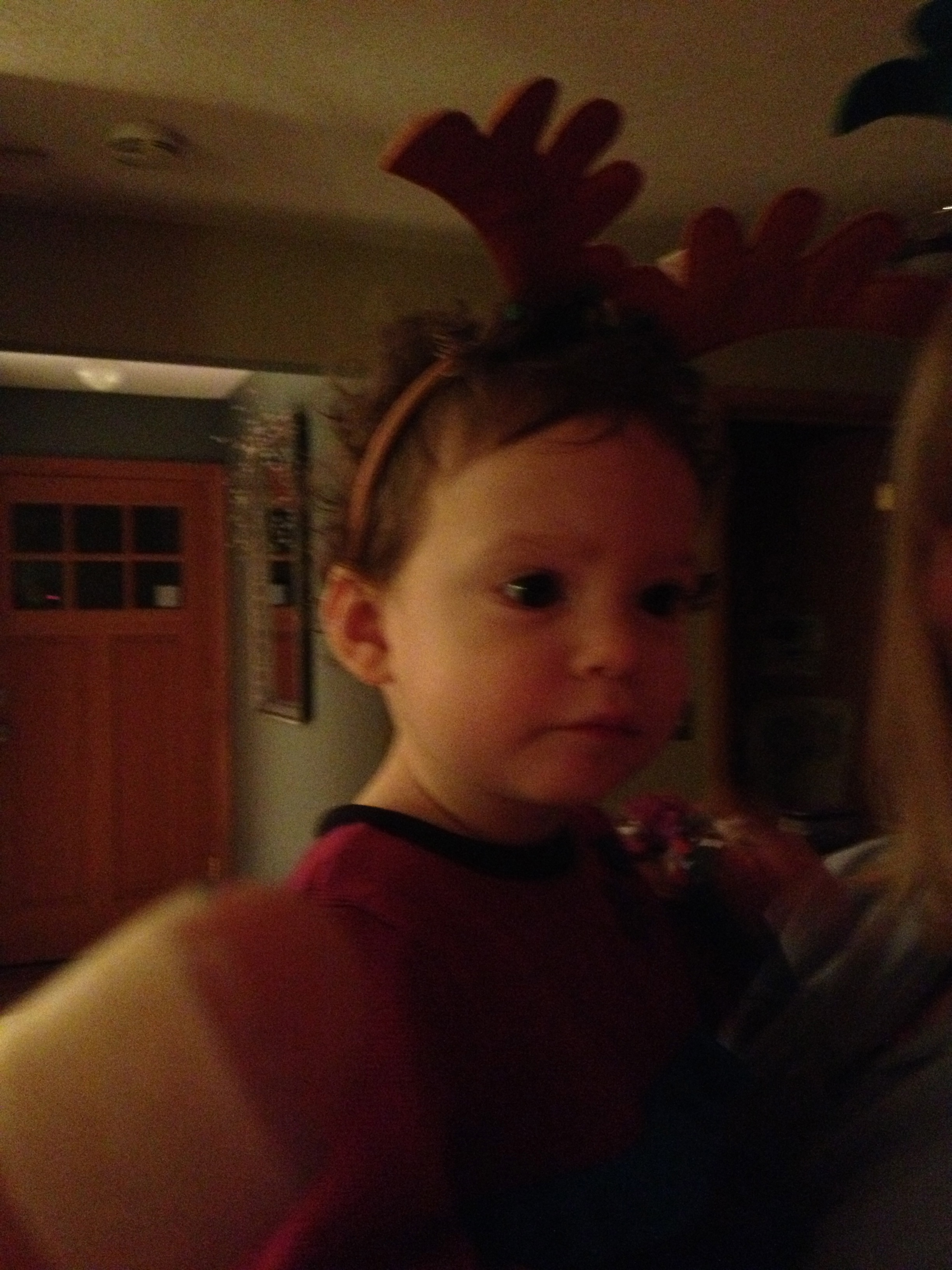 Genevieve as reindeer.